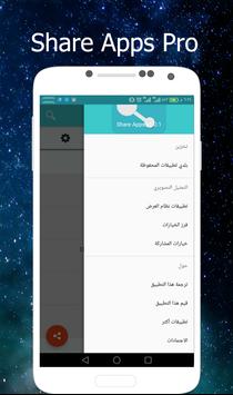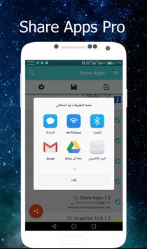 * مشاركة التطبيق الذي تريده لإصدقائك عبر بلوتوث أو الرسائل القصيرة أو البريد الالكتروني أو فيسبوك أو أية شبكة اجتماعية أخرى.