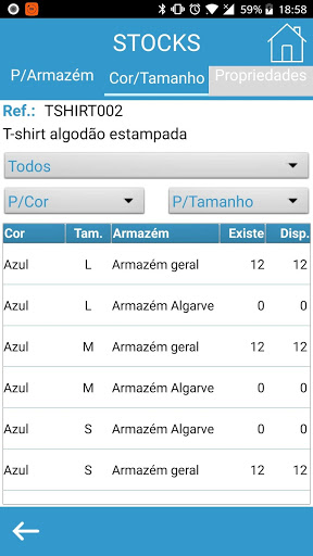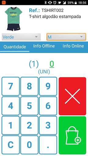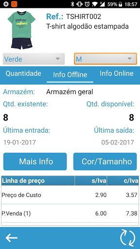Aplicação permite efetuar consultas de informação sobre o produto, online e offline, como preços, stocks (inclusive por cor e tamanho ou propriedade).