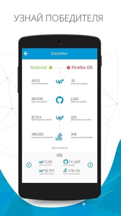 Stackwar - هو تطبيق فريد من نوعه يسمح لك لمعرفة ما هي البرامج التي سيكون من الضروري لوقف الاختيار، لمعرفة التكنولوجيا التي هي أكثر شعبية وهي في ارتفاع الطلب في السوق، والذي من شأنه أن يكون الجهاز أكثر ربحية لشراء، الخ.