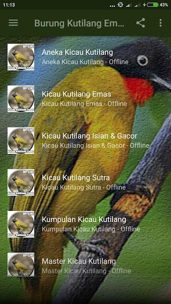The sound of the Kutilang Emas Bird Mp3: the chirping of birds is a long duration. Come on, the gold finches lovers just install the birdsong application on your cellphone. In this one application, there is a large collection of chirping birds, gold finches, long-term gacor.