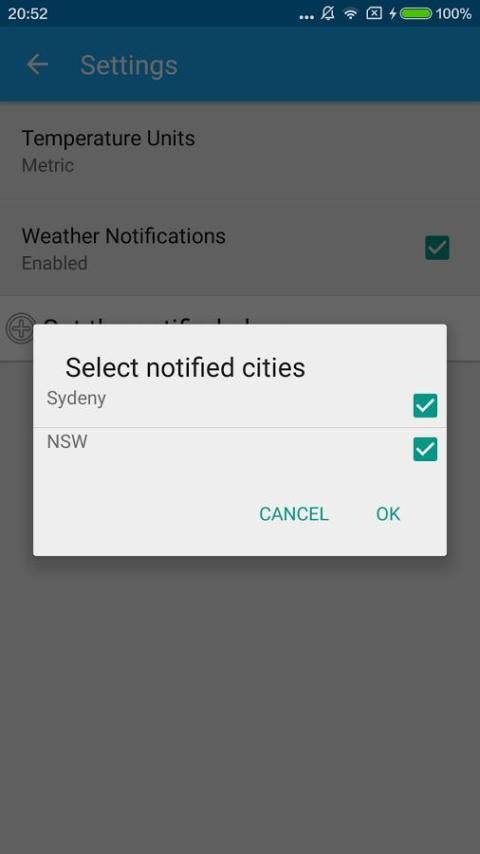 3. مدن مختارة والتي تحتاج إلى إرسال إخطار توقعات كل يوم. تمكين / تعطيل وظيفة إعلام