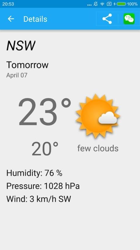 هذا هو أداة الطقس قليلا مع توقعات بسيطة وجميلة. وهو يتضمن الميزات التالية: