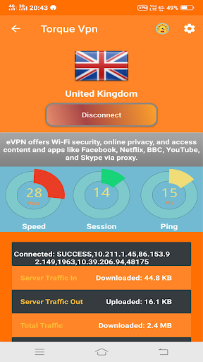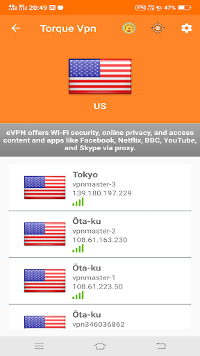 يعتبر Torque VPN VPN غير محدود مجانا مع 35 دولة و 149 خادما يتيح لك خدمة الإنترنت بالخصوصية والأمن.إذا كنت تبحث عن VPN Fast VPN لإظهار Netflix الخاص بك، فإن Security Hotspot WiFi وإلغاء حظر المواقع التي يمكنك الحصول عليها كلها مع عزم الدوران VPN.
