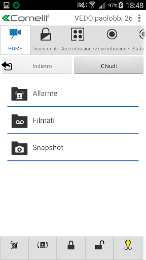 You are now able to access your Comelit VEDO intruder alarm systems from anywhere, view live images from the cameras, send the commands for the system management like :