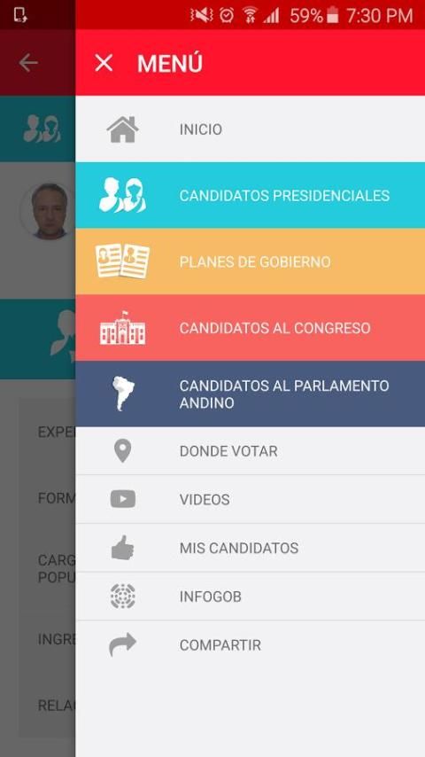 تلبية السير الذاتية والخطط الحكومية للمرشحين لمنصب رئيس الجمهورية والكونغرس والبرلمان الأنديز.