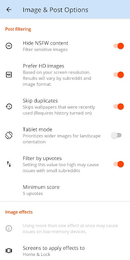 يستحق القفل الخاص بك والشاشة الرئيسية بعض التنوع. يستخدم هذا التطبيق صورا من Reddit لتوفير مصدر غير محدود لخلفيات عالية الدقة بناء على Subredits والفئات المفضلة لديك. يعمل التطبيق في الخلفية ويدير خلفياتك لك. مع الجداول المخصصة من كل ساعة إلى يوميا، يمكنك الحصول على عرض شرائح أوتوماتيكي على شاشتك الرئيسية أو القفل. الإعدادات قابلة للتخصيص بشدة، مع طن من الخيارات مثل تصفية النشر، والفرز المرتبة وتأثيرات الصور، وفئات محددة مسبقا.