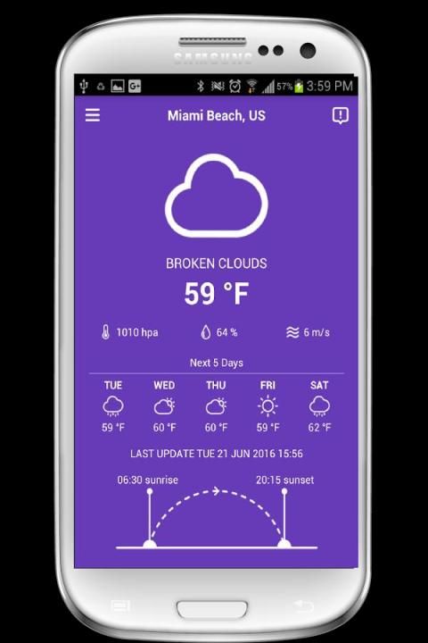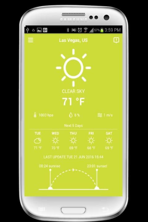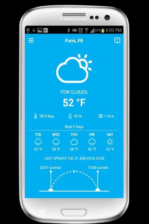 هذا التطبيق المدهش التي وضعتها Fundi شركة يجلب لك توقعات الطقس الدقيق والسريع بغض النظر عن مكان في العالم أنت. هذا التطبيق يجلب توقعات الطقس من أصغر المدينة إلى أكبر مدينة في العالم. هذا هو التطبيق الرسمي لتوقعات الطقس لكل بلد ومدينة في العالم. فقط إضافة البلاد ومدينة لتوقعات الطقس لحية وسريعة. ويظهر هذا التطبيق توقعات القادم لمدة 5 أيام القادمة خلال الأسبوع. هذا هو التطبيق الرسمي لتوقعات الطقس لكل بلد ومدينة في العالم. فقط إضافة البلاد ومدينة لتوقعات الطقس لحية وسريعة. ويظهر هذا التطبيق توقعات القادم لمدة 5 أيام القادمة خلال الأسبوع.