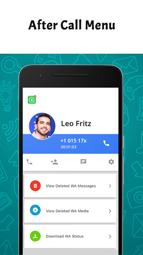 Recover deleted messages & media, download WA status with call information on the After Call Menu.