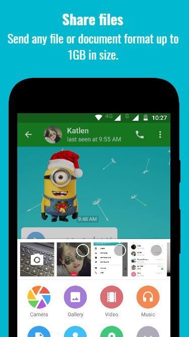 - With features for sending photos, videos, location, contact and audio (voice message)