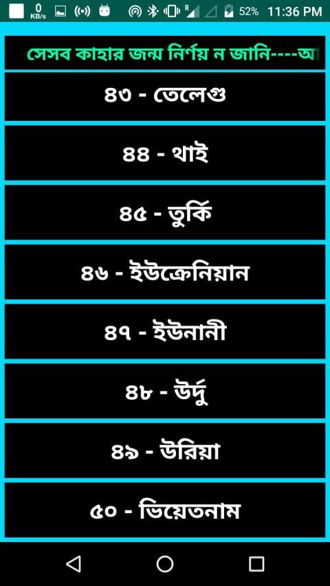 যেসকল ভাষা অ্যাপটিতে অন্তর্ভুক্ত হয়েছে................