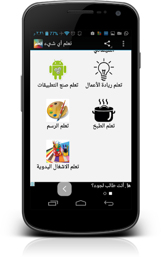 تطبيق تعلم أي شيء يحتوي على اكثر من 900 فيديو تعليمي في عدة مجالات وهي:
