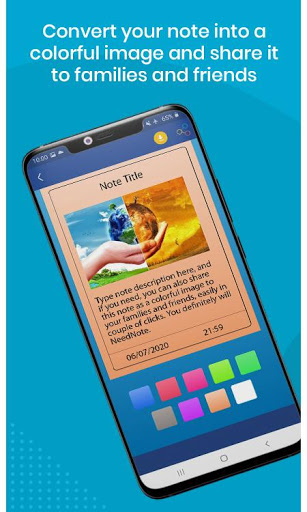 باستخدام neednote ، يمكنك بسهولة حفظ وتحويل ملاحظاتك أو للقيام قائمة كصورة ملونة ومشاركتها لعائلاتك وأصدقائك باستخدام أي رسول أو ببساطة استخدام الصورة كحالة صورة ملف المراسلة الخاصة بك.
