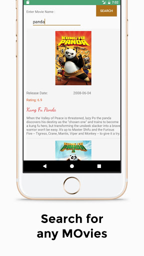 5)SEARCH - You can search any movies, access data and watch trailer that are available