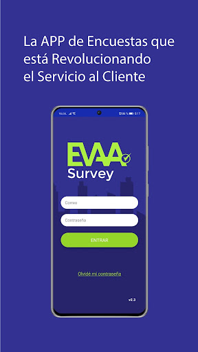 EVAA Survey es un APP de Encuestas para medir el servicio en tiempo real, para accesar a ella es necesario crear previamente una cuenta a través de https://www.evaa.mx