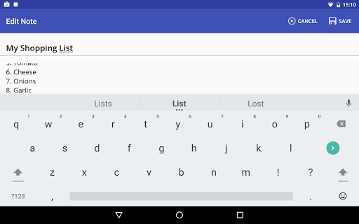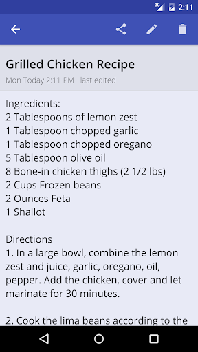 Plain Memo allows you to edit note with a single tap in the Note View screen of the app. The location of your touch automatically places the cursor on the same area. You can also initiate edit mode via Edit Menu icon.