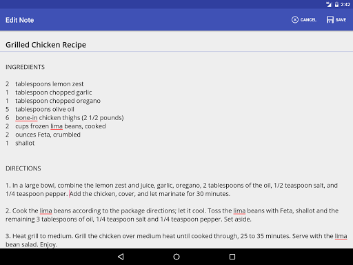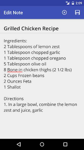 To save a note, you can click the Save Menu icon or press back to prompt a save confirmation dialog.