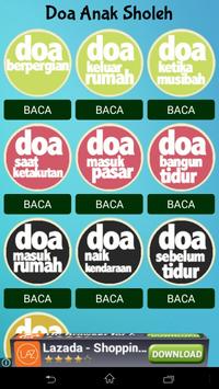 Doa anak Sholeh adalah kumpulan doa anak sholeh sehari-hari. Cocok untuk anak-anak hafal doa dan surat pendek, dilengkapi dengan bacaan arab, terjemahan dan juga tersedia audio untuk doa-doanya.