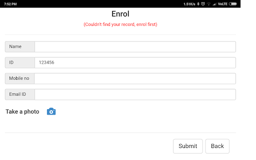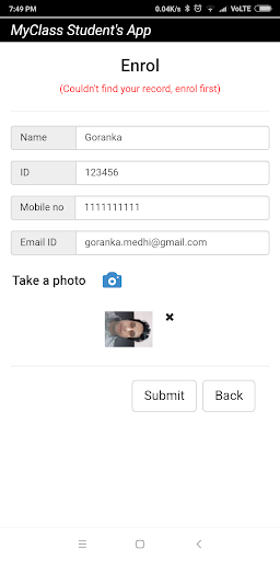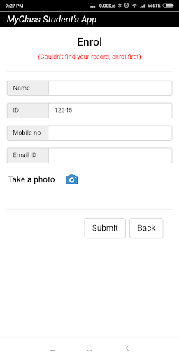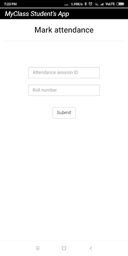 يجب استخدام هذا التطبيق بالتزامن مع تطبيق MyClass Pursance Teache.باستخدام هذا التطبيق، يمكن للطلاب أو الحاضرين تحديد حضورهم باستخدام هواتفهم الذكية عن بعد.يحتاج المعلم أو المدرب إلى استخدام تطبيق MyClass الحضور وبدء جلسة حضور بعيد.يحتاج الطلاب أو الحاضرون إلى دخول معرف جلسة الحضور الذي يقدمه المعلم من أجل وضع علامة الحضور باستخدام هذا التطبيق.بالنسبة للمستخدم لأول مرة، يبدأ التطبيق جلسة التسجيل أيضا.أثناء التسجيل، يطالب التطبيق المستخدم بإدخال تفاصيل مثل الاسم والهاتف رقم ومعرف البريد الإلكتروني والصور الذي يتم حفظه في تطبيق المعلم أو المدرب كمسجلات.