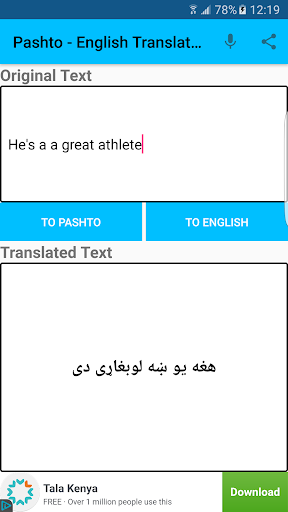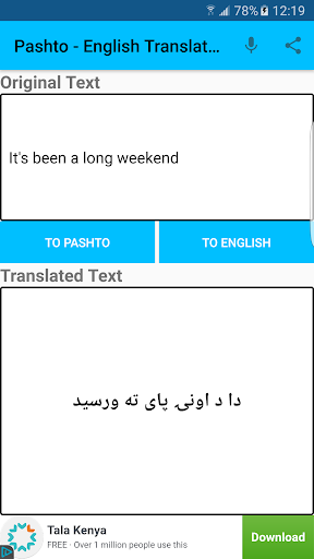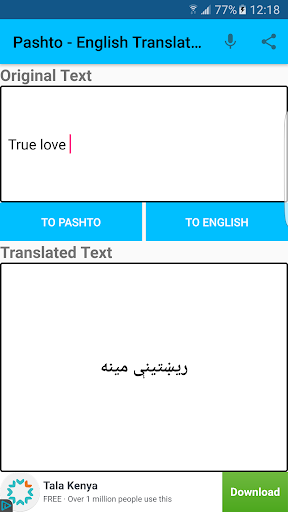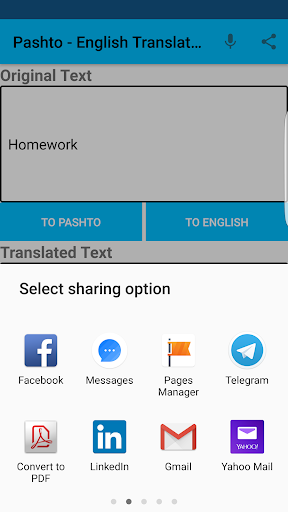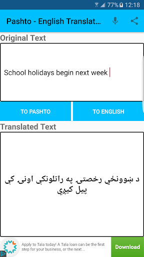 You can translate individual words, phrases or sentences to Pashto and from Pashto to English.