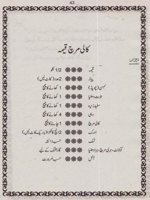 Bohat hi kamaal recipes haan is book mai, punjabi samosa, chicken roll paratha, dhowan ghost, sindhi kabab aur bohat sari urdu recipes.