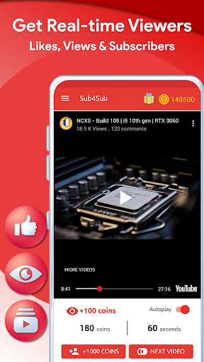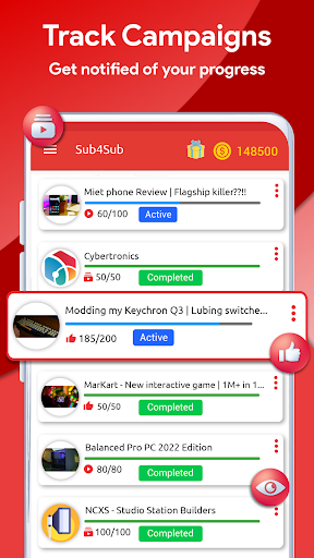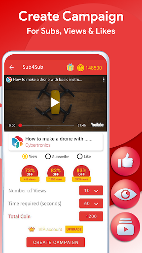 يجعل تطبيق Sub4Sub من السهل كيفية الحصول على طرق عرض ومشتركين لقنتك والحصول على نقد.إنشاء حملة مع العملات المعدنية المكتسبة.