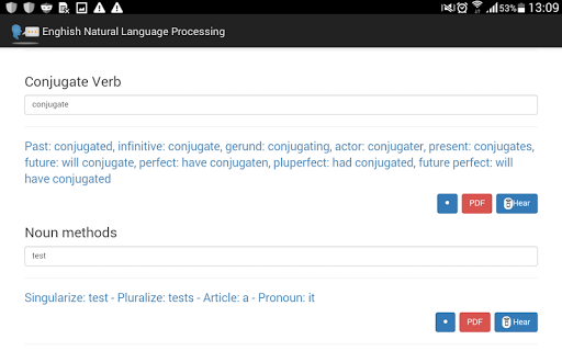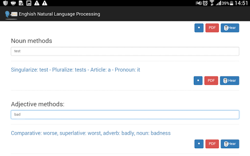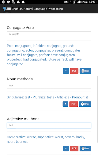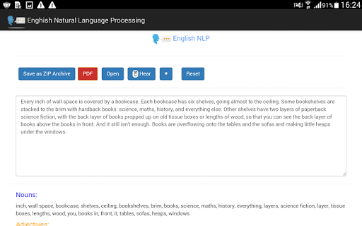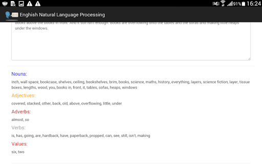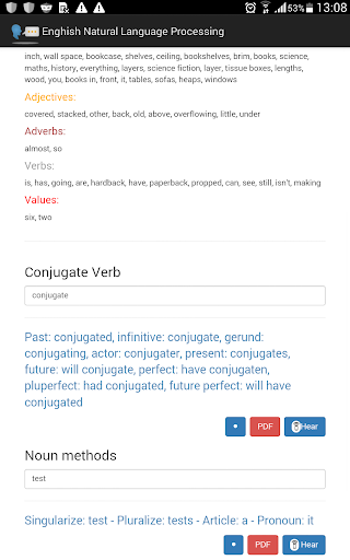- احصل من إدخال النص: الأسماء ، الصفات ، الظروف ، الأفعال والقيم