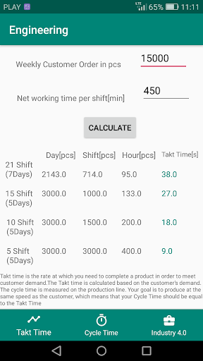 يرجى الاطلاع على بعض المعلومات المتعلقة بتحول الهندسة الصناعية.سيسمح لك التطبيق بفهم الفرق بوضوح بين وقت حلقة وقت Takt VS.