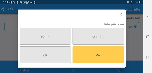 * فلترة نتائج البحث بالاسم حسب الشركةيمن موبايل -سبأفون- يو -واي)