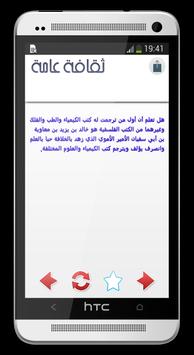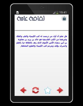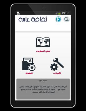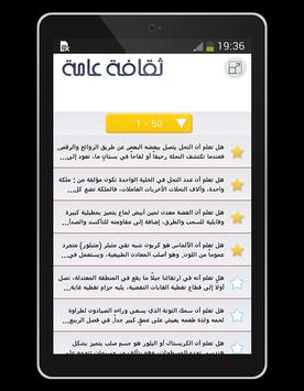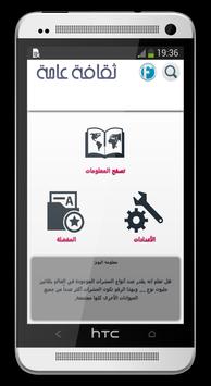 تطبيق ثقافة عامة : هو تطبيق غني بالمعلومات في مختلف المجالات بحيث يغني رصيدك المعرفي و ما يميزه عن غيره بسهولة استعماله و تنوع معلوماته و توفر عدة مزايا ك مشاركة معلوماتك المفضلة على مواقع التواصل الاجتماعي و باقي التطبيقات الاخرى....
