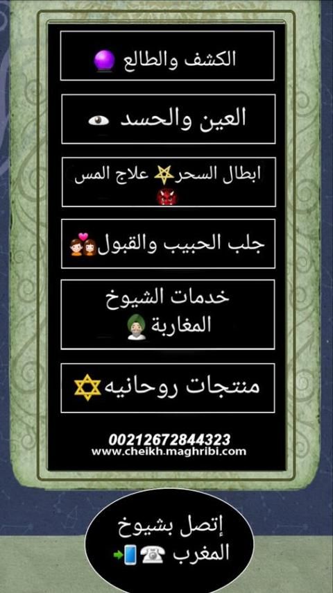 It also contains our application on the following: personal analysis brought news of diagonals, tips and free recipes, treat magic and jinn and touch, decode bound, treat gin lover and treatment of the consort and disease spirituality, detection via phone, prayers facilitate marriage ,, invocations marriage, states bring the beloved marriage , prayers make things easier, how to bring good luck, how to bring the beloved
