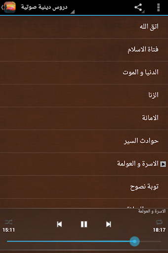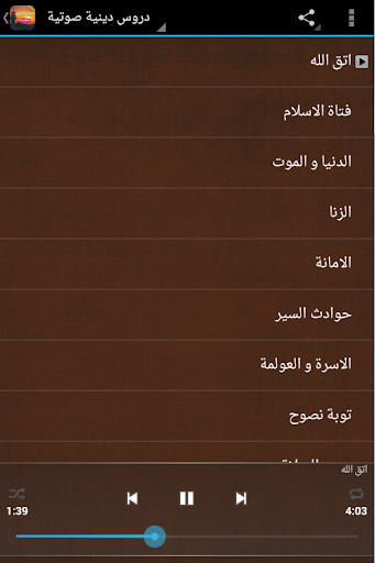 هنيئا لكم بتحميل البرنامج ونود اعلامكم ان هذا التطبيق يمكنكم من الإستماع إلى كتب دينية اسلامية مع امكانية تحميل المحاضرات للعمل بدون نت وهي تضم معلومات دينيه و دعوات و حكم و خواطر و قصص
