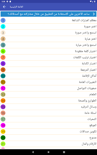 سيساعدك هذا التطبيق المجاني على تعلم كيفية قراءة الكلمات والعبارات وكتابتها ونطقها. يمكنك تعلم لغة واحدة أو أكثر من 100 لغة ، مثل الإنجليزية والفرنسية. إنها لعبة تعليمية ممتعة وسهلة الاستخدام تتضمن آلاف الكلمات والعبارات التي تزودك بالمعرفة في مواقف العالم الحقيقي. يتم تصنيف التطبيق إلى 100 موضوع تغطي الحياة اليومية أو مواقف السفر.