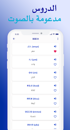 - جميع الدروس مدعومة بالصوت من أجل تعلم اللغة الأمازيغية بسهولة من خلال الاستماع .