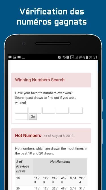 Notez bien que ne nous ne fournissons que les résultats de loterie déclarés par le département officiel de la loterie canadienne, donc il ne s’agit pas de l’application officielle de la loterie Québec.