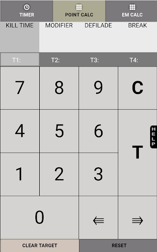 The Gunnery-Timer and Calculator (G-TAC) app features three functional tools: Timer, Point Calculator, and Engagement Modifier (EM) Calculator.