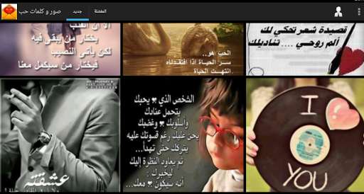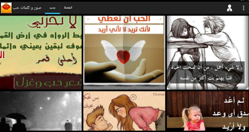 يحتوي التطبيق على قسمين رئيسيين قسم لحالات الصور وقسم للحالات الكتابية رسائل حب رومانسية . حيث إن كل قسم بدوره يحتوي على العديد من الأقسام الفرعية مثل قسم حكم ونكت حزن، صداقة ...إلخ