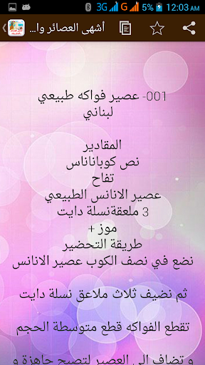 - يمكن اضافة وصفة عصير إلي المفضلة للرجوع إليها مرة آخري بسهولة