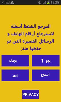 و الرسائل القصيرة التي قمت بحذفها عن طريق الخطأ دون الحاجة إلى الإتصال بالنت او روت الهاتف ماعليك الا تحديد مدة البحث والتطبيق يقوم بالباقي بالبحث في الذاكرة الداخلية و الخارجية للموبايل.