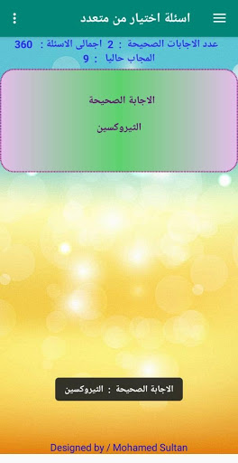 2- يقوم البرنامج باظهار الاجابة الصحيحة فى حالة الاجابة الخطأ
