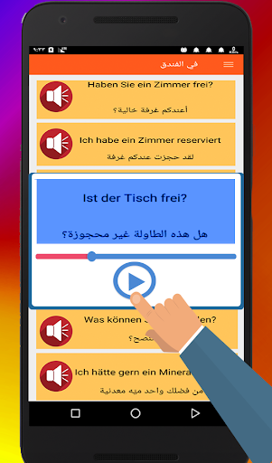 تطبيق تعلم اللغة الالمانية بالصوت هو تطبيق شامل يحتوي على عدة أقسام وعدة محادثات مختلف