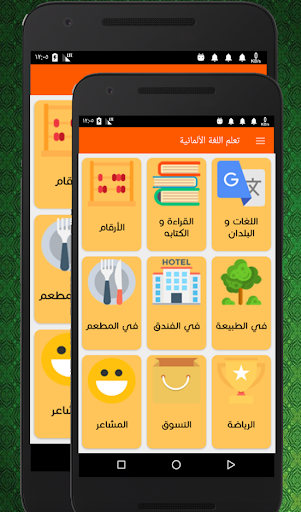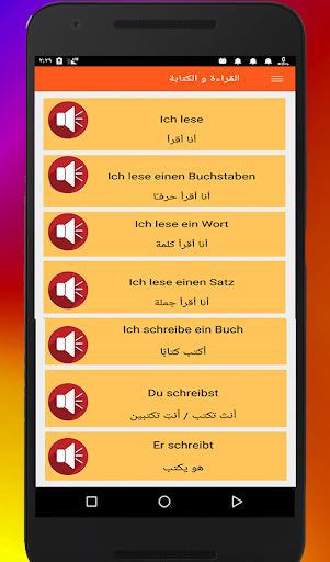 يحوي التطبيق 33 درس يضم أزيد من 1000 كلمة وجملة باللغات العربية والألمانية كتابتاً وصوتاً الدروس كالأتي: