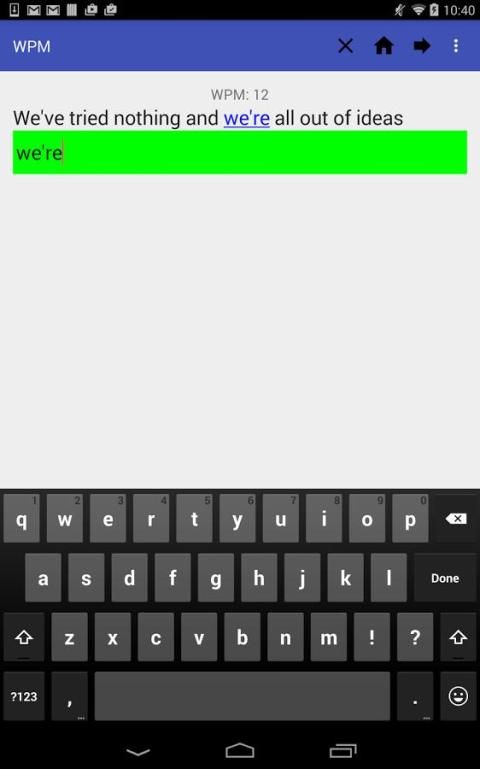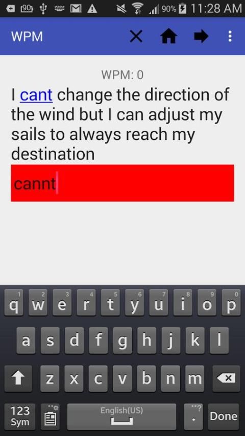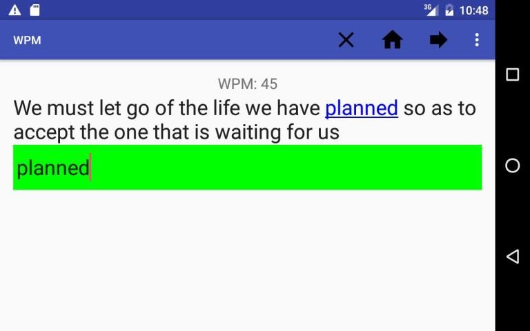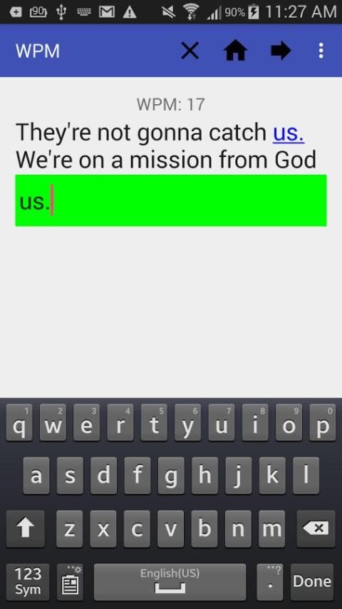 لاستخدام التطبيق يمكنك ببساطة اختيار صعوبة ومن ثم البدء بكتابة الكلمات التي يتم تسليط الضوء، وشدد في النص الأزرق. عند الانتهاء من كلمة وضرب الفضاء يتم مسح كلمة حتى تتمكن من البدء بكتابة سلط الضوء على التالي / كلمة تحتها خط. عندما يتم كتابتها بالكامل الاقتباس وسوف تتحول تلقائيا إلى الاقتباس المقبل وقفة الموقت، وسوف تبدأ الموقت عند البدء في الكتابة مرة أخرى.