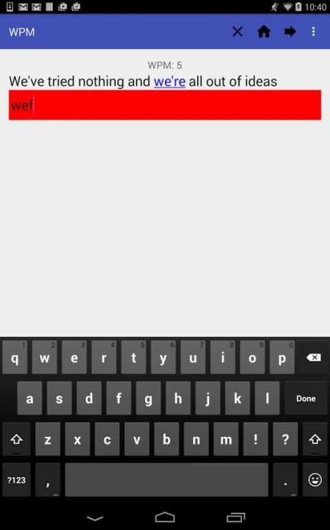 وبم (كلمة في الدقيقة) هو التطبيق الكتابة التي تتعقب مدى السرعة التي اكتب بهدف مساعدتك على تحسين. ويضم العديد من يقتبس من مختلف الصعوبات وجهاز توقيت لتتبع مدى السرعة التي كنت تكتب.
