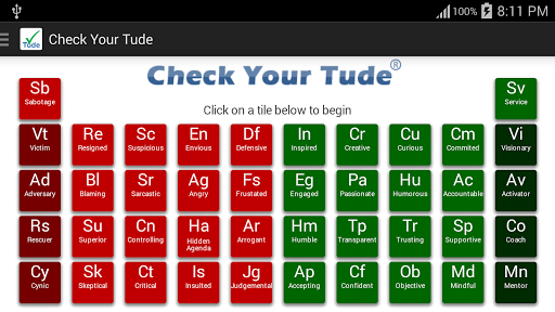 Organization of the chart - The chart looks like a chemistry periodic table of the elements but consists of attitudes as the elements.