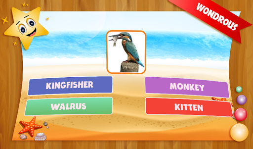 এই শব্দটির কুইজ অংশে বাচ্চাদের জন্য খেলা, শব্দের ক্যুইজ খেলা চারটি বিভাগে পরিচালিত হয়েছে। প্রথম বিভাগে, বাচ্চাদের দেওয়া পশুদের ছবি / পাখির চিত্রের শব্দটি চিহ্নিত করতে হবে। সাউন্ড গেমটি একটি নির্দিষ্ট শব্দের পাঠ্য দেখায় এবং বাচ্চাদের দেওয়া বিকল্পগুলির সাথে শব্দটি মিলতে হবে। উপরন্তু বাচ্চাদের তার প্রাসঙ্গিক ছবি দিয়ে পাখি এবং প্রাণীদের বিভিন্ন শব্দের সাথে মেলে। তাছাড়া, ব্যবহারকারীরা ভলিউম বোতামটি ব্যবহার করে শব্দ প্রভাবটি সামঞ্জস্য করতে পারেন।