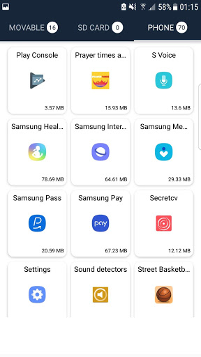 বিভাগের অ্যাপ্লিকেশন: অ্যাপ ম্যানেজার বিভাগের সাথে আলাদা অ্যাপ্লিকেশানগুলি সহজেই অ্যাপ্লিকেশনগুলি সহজে খুঁজে পেতে সহায়তা করে যা সক্ষম বা না সক্ষম বা না, এসডি কার্ড স্টোরেজে অ্যাপ্লিকেশনটি শুধুমাত্র অভ্যন্তরীণ সঞ্চয় করার অনুমতি দেয়। ইত্যাদি
