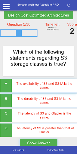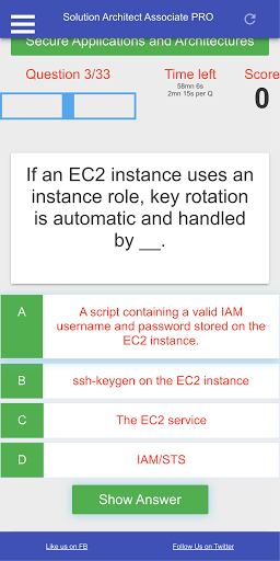 Diese AWS-Certified Solution Architect Associate Practice Prep App App hat 200 Fragen und Antworten, die häufig aktualisiert wurden, 2 Mock-Prüfungen, 100 häufig gestellte Fragen, der Zugriff auf detaillierte Antworten und Referenzen.