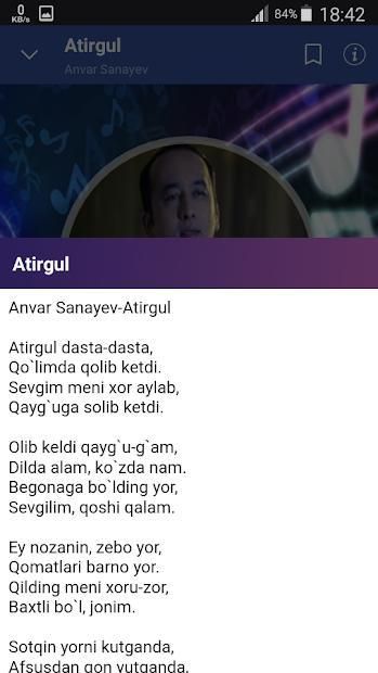 I wants to share an app for all of you. 20,000+ users downloaded Anvar Sanayev qo'shiqlari, internetsiz latest version on 9Apps for free every week! Although you probably won't notice it at first. This hot app was released on 2018-11-22. Just download it and use on your android phone!