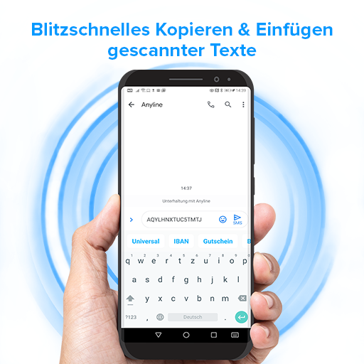 Mit dem Anyline Keyboard kannst du Texte scannen & Nummern kopieren, um sie schnell & einfach in beliebige Apps einzufügen – ganz ohne mühsames Abtippen. Dieses Keyboard funktioniert wie jede normale Tastatur für Android, bietet aber zusätzlich die praktische Scan-Funktion. Du brauchst dich also nicht umgewöhnen!