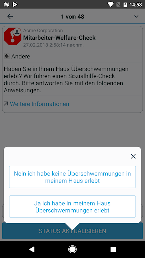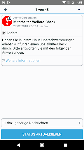 Bei einem Ereignis können Nutzer kritische Warnungen erhalten und leicht Bilder und Videos von unterwegs an die Zentrale zurückschicken, um das Lagebewusstsein in der Organisation zu stärken. Benutzer können auch mit einem Klick Notfallnachrichten verschicken oder sogar für zusätzliche Sicherheit und Schutz den GPS-Standort in Echtzeit teilen.